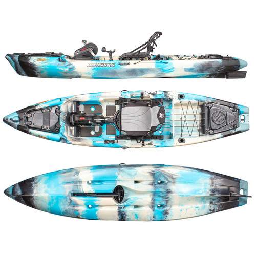This hull performs beautifully on lakes, rivers, inshore and even offshore salt environments. The combination of one of the best-designed all-around kayaks and the Flex Drive Mark IV make this a leading combination for hands-free kayak angling in a wide array of waterways!