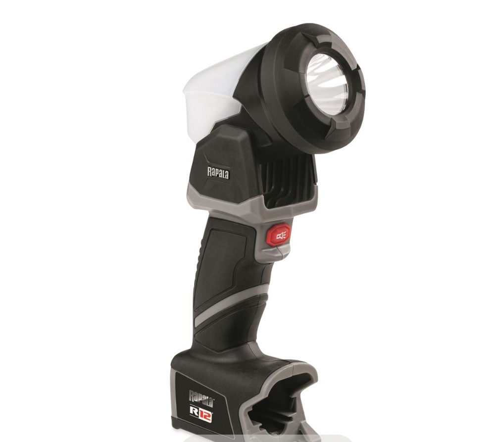 Rapala R12 Lithium Spotlight Lantern sends shadows packing with a max output of 1,000 lumens. 3 brightness settings for energy conservation. 1 additional UV setting for quickly charging glow lures.